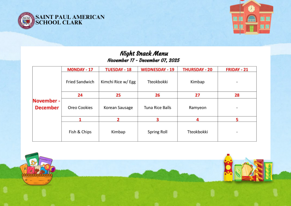 Night Snack Menu November 17 - December 07, 2025