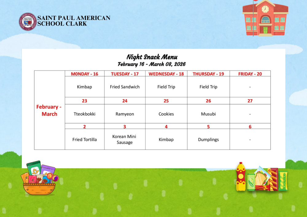Night Snack Menu February 16 - March 08, 2026