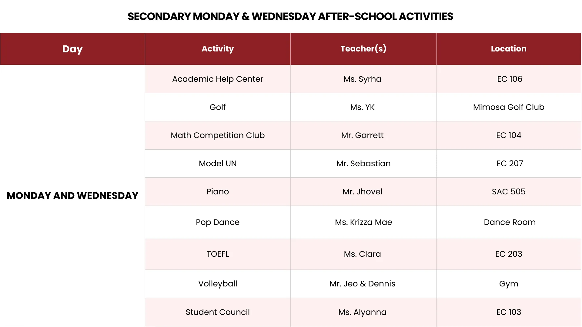 The Elementary Sports Club gives students the chance to learn and enjoy a variety of sports in a fun and inclusive environment. The program focuses on teamwork, sportsmanship, coordination, and fundamental motor skills. Students will rotate through popular sports like basketball, soccer, volleyball, and relay games-while developing fitness, discipline, and a love for healthy competition.