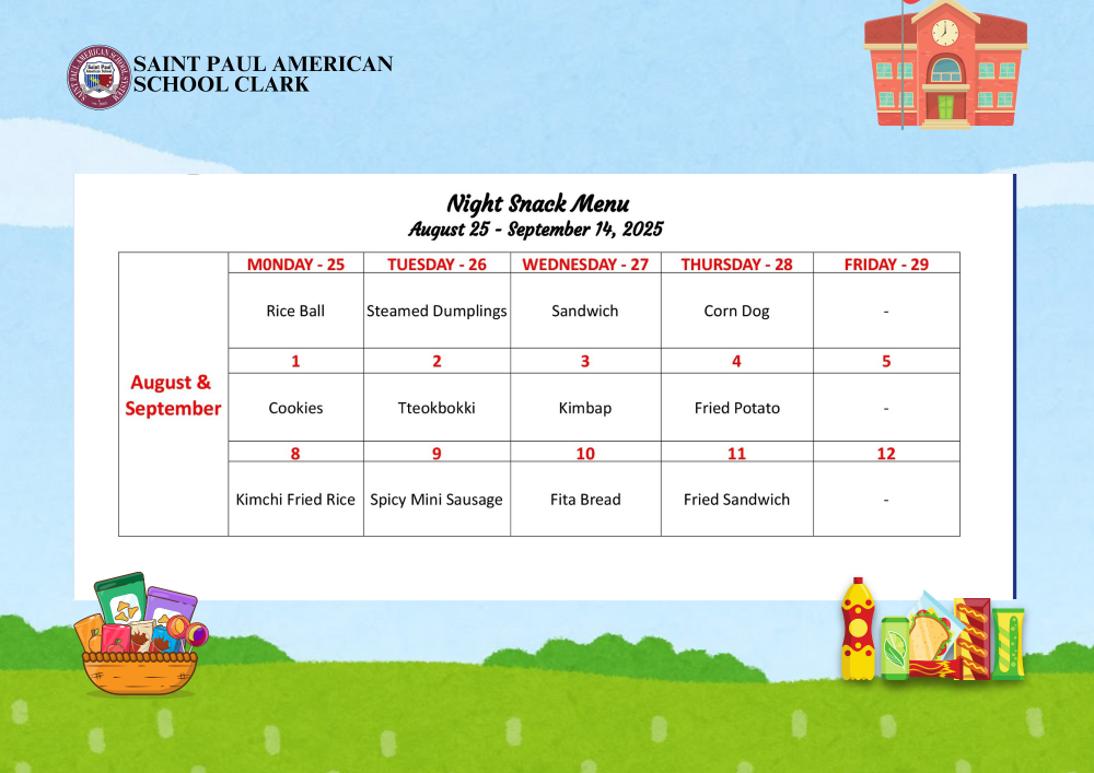 Night Snack Menu August 25 - September 14, 2025