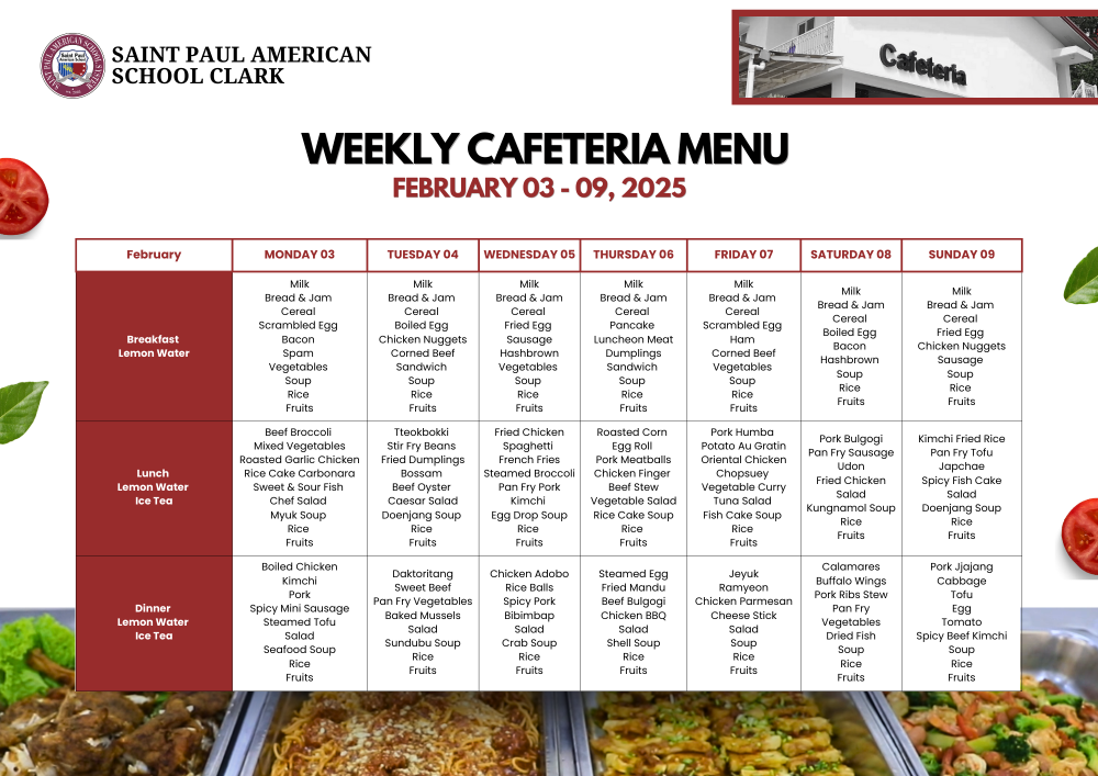 Weekly Cafeteria Menu February 3 - 9, 2025