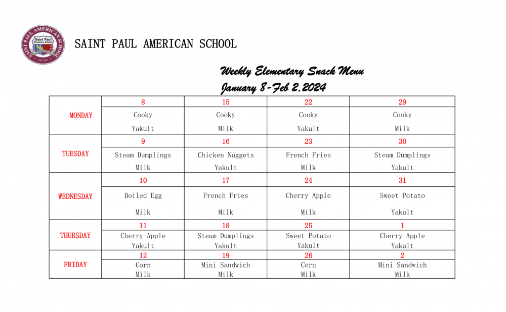 Elementary snack menu January 페이지 정보 By SPAS Date24-01-08 18:48 Hit24,284 Link Previous Next List 본문 Elementary snack menu January 댓글목록 등록된 댓글이 없습니다. Previous Next List