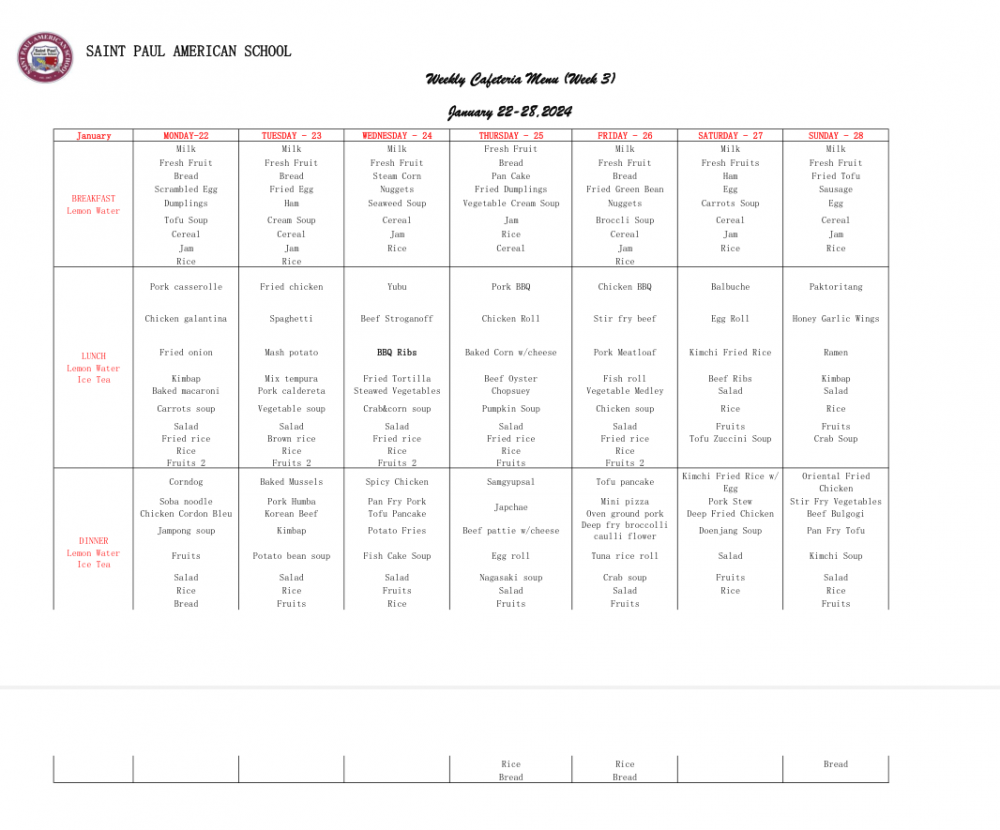 Cafeteria weekly menu 3 January 페이지 정보 By SPAS Date24-01-08 18:50 Hit23,113 Link Previous Next List 본문 Cafeteria weekly menu 3 January 댓글목록 등록된 댓글이 없습니다. Previous Next List